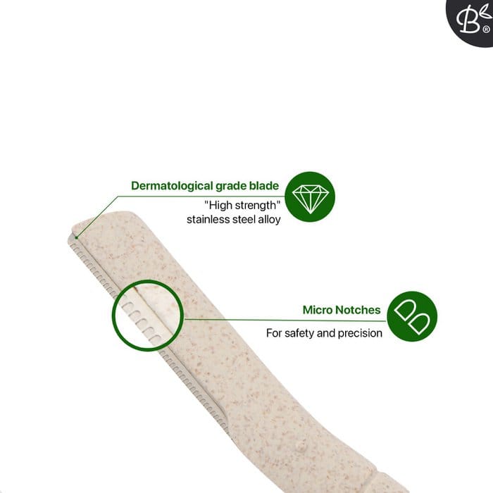 Mit diesen langlebigen Dermaplaning Rasierklingen aus Weizenstroh kannst du deinem Gesicht ganz einfach einen Schub verleihen. Die Klingen entfernen sanft abgestorbene Hautschüppchen und feine Härchen für einen glatten, strahlenden Teint. Hergestellt aus pflanzlichen Reststoffen und verpackt in 100% biologisch abbaubarem Material. Besser für Ihre Haut und den Planeten.