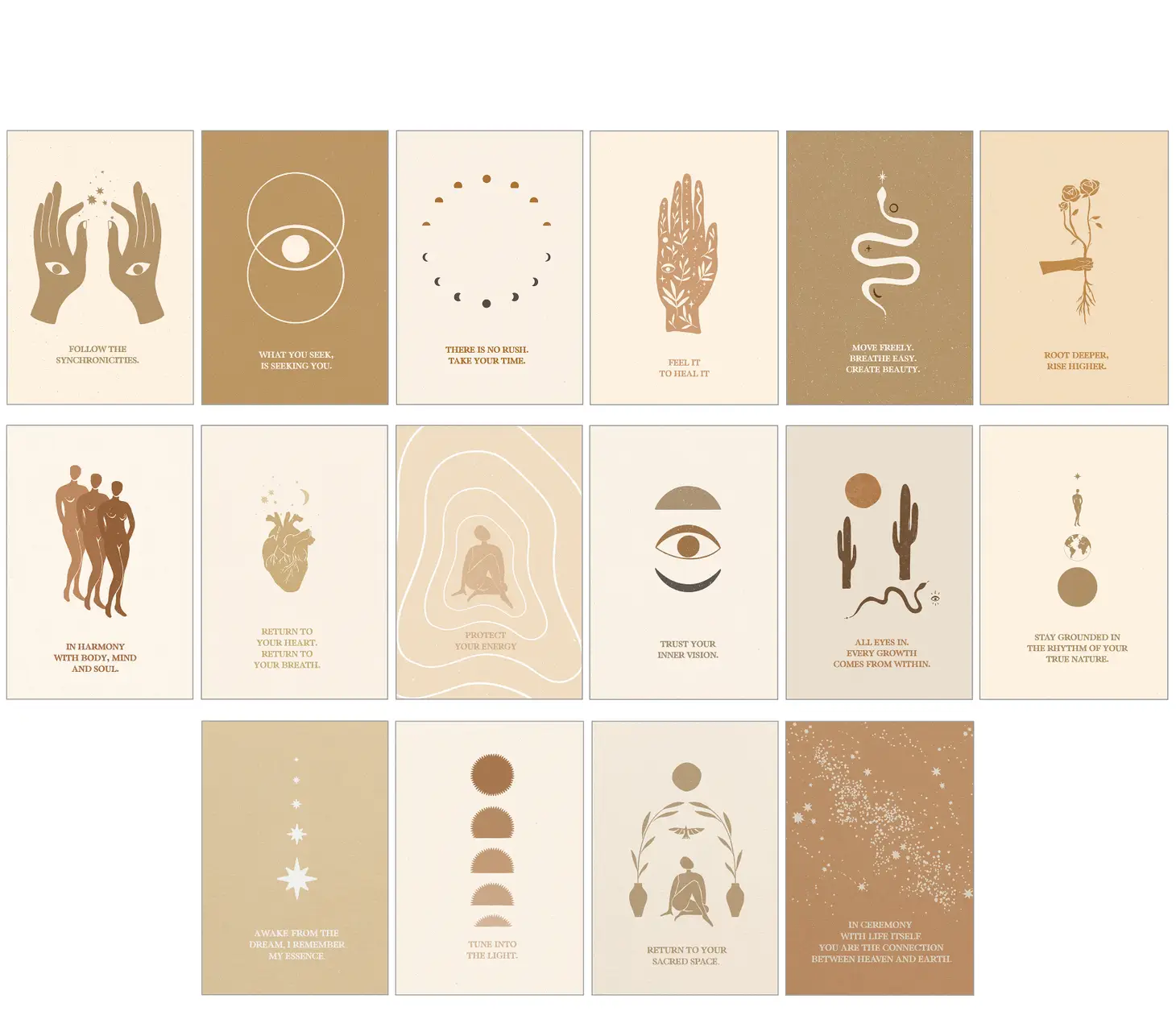 16 affirmation cards that remind you of the wisdom of your heart.