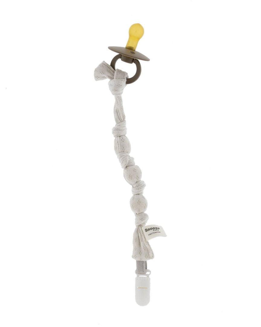 Raakt jouw kleintje steeds zijn/haar speentje kwijt? Dat probleem is opgelost met dit fijne geknoopte speenkoord van Snoozebaby. Het speenkoord is gemaakt van biologisch katoen en heeft een lengte van ongeveer 10 cm. Met het klipje maak je het speenkoord makkelijk vast aan de kleertjes van jouw kleintje of aan zijn/haar favoriete knuffel.