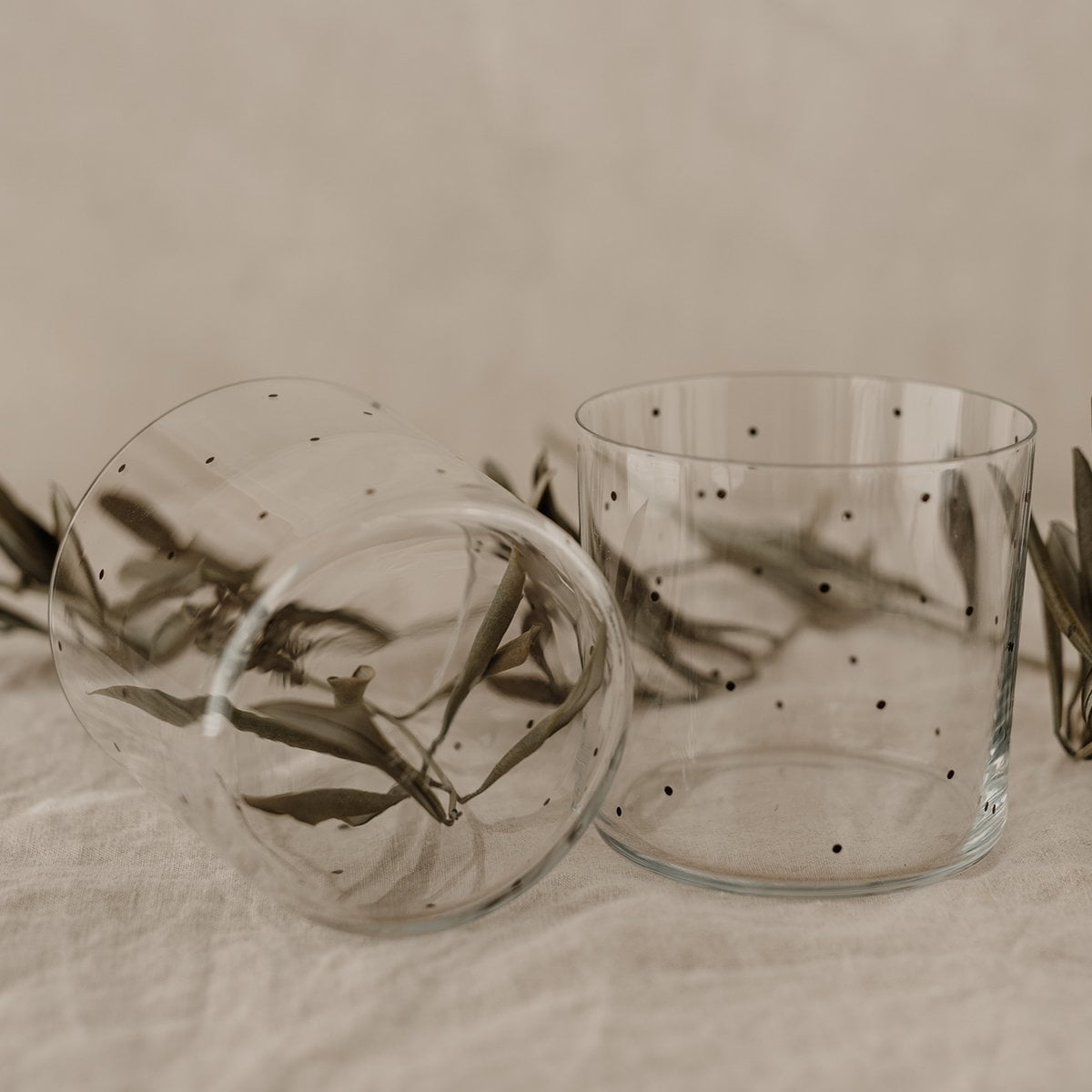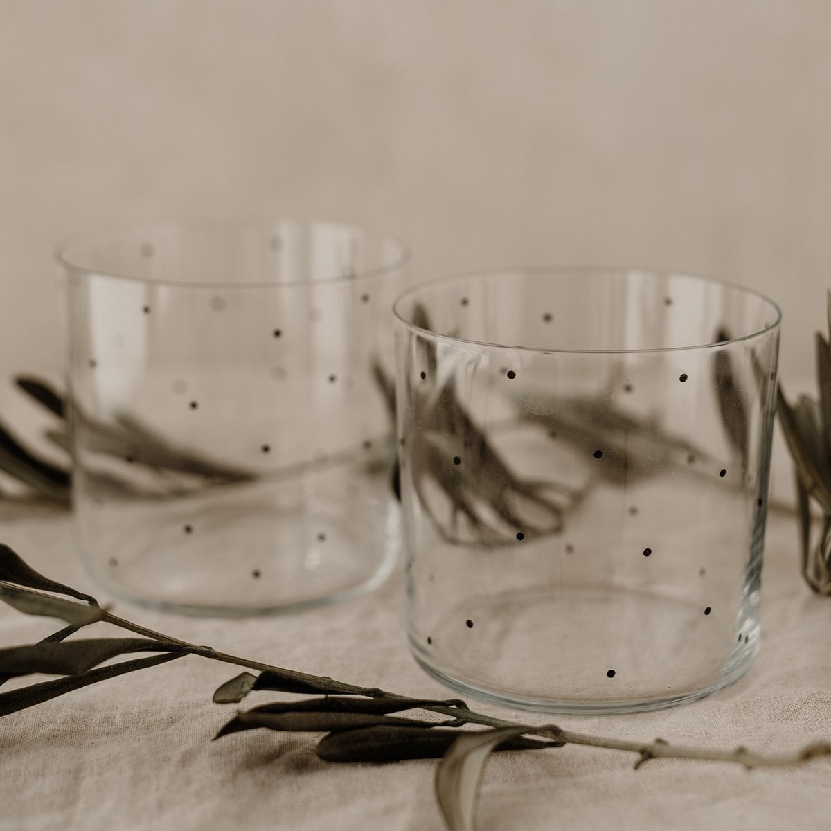 Hoe leuk zijn deze prachtige drinkglazen met stippen! De drinkglazen zijn zeer dunwandig en daardoor superlicht en toch extreem stabiel en stapelbaar. Dat is precies wat ze zo bijzonder maakt in combinatie met het minimalistische design. Gewoon een heel bijzondere blikvanger in jouw keuken – als waterglas, cocktailglas, dessertglas of voor het serveren van fruit, snacks of muesli!