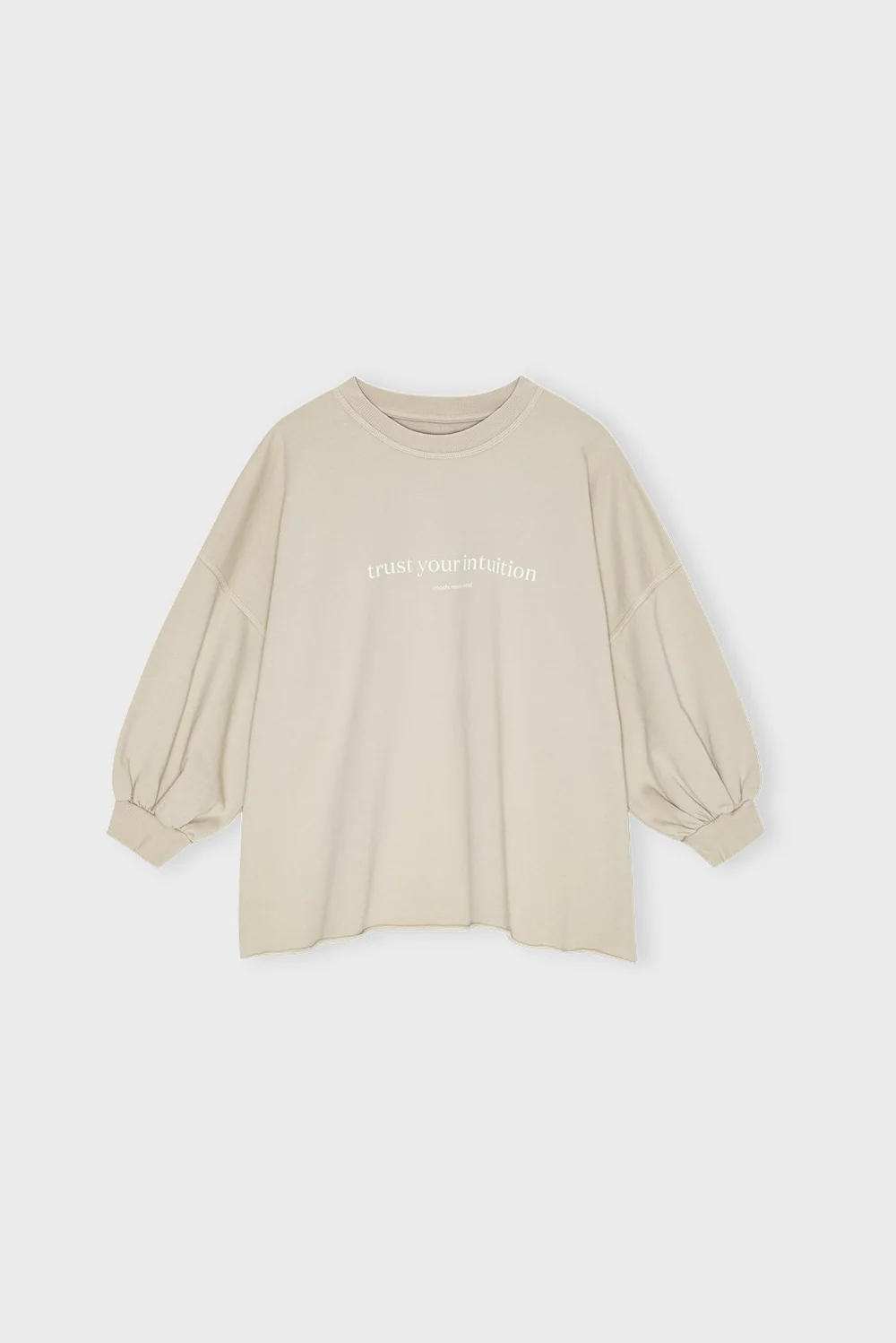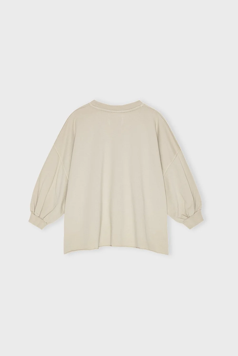 Deze zachte sweatshirt heeft een oversized, boxy fit en een ronde halslijn, gecombineerd met driekwart mouwen die een volumineus effect geven. De ruwe onderzoom met subtiele zijsplitten zorgt voor een extra ruime pasvorm, waardoor de sweatshirt een trendy en comfortabele uitstraling krijgt.