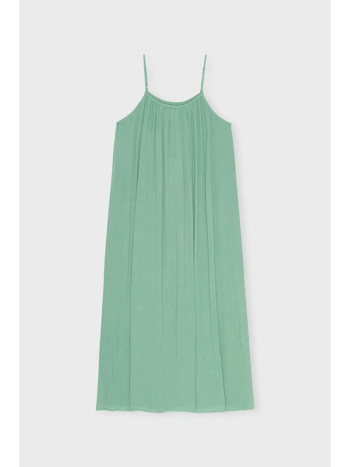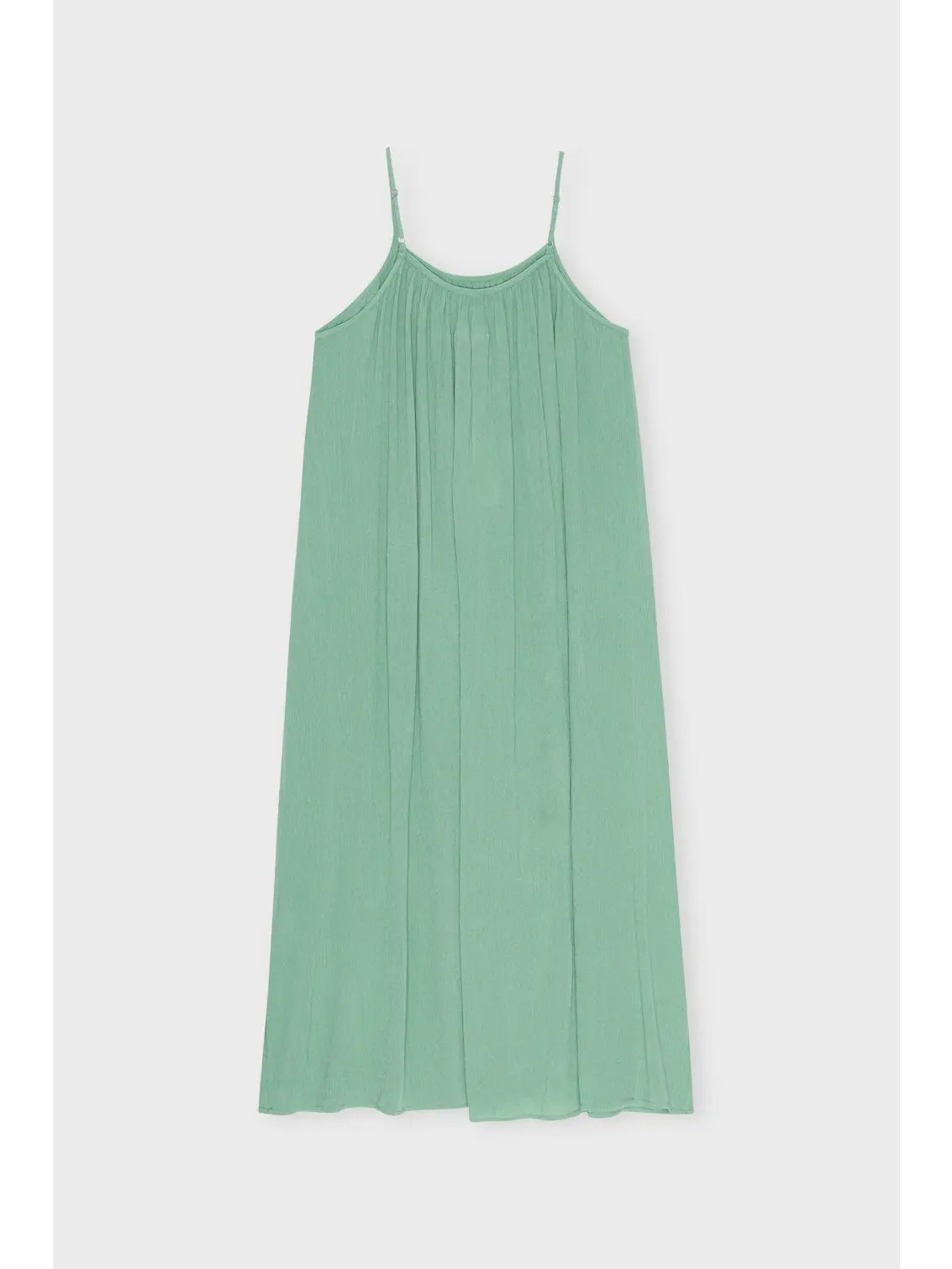 Deze zachte, vloeiende en vrouwelijke midi-jurk met verstelbare schouderbanden is vervaardigd van prachtige crepe LENZING™ ECOVERO™ viscose rayon. Het ademende materiaal zorgt ervoor dat je koel en comfortabel blijft op warme zomerdagen en -nachten. De jurk heeft een licht oversized A-lijn pasvorm, maar valt trouw aan de maat. We raden aan om je normale maat te kiezen voor de perfecte pasvorm.
