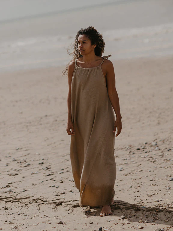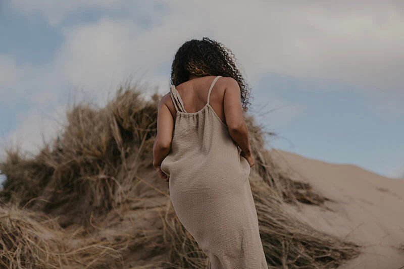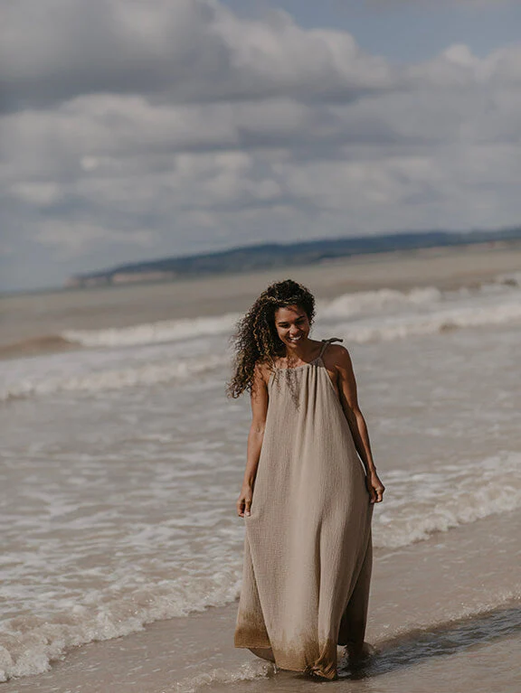 Geniet van de héérlijke zomerse weekenden in deze gemakkelijk te dragen maxi-jurk. De Weekend Dress heeft een Verstelbaar bandje op één schouder, die kan worden aangepast voor een perfecte halslijn. Of je nu de voorkeur geeft aan klassiek hoog of laag en uitgesneden. Deze jurk is gemaakt van een heerlijk zachte mousseline van biologisch katoen en valt hoe dan ook als een droom.
